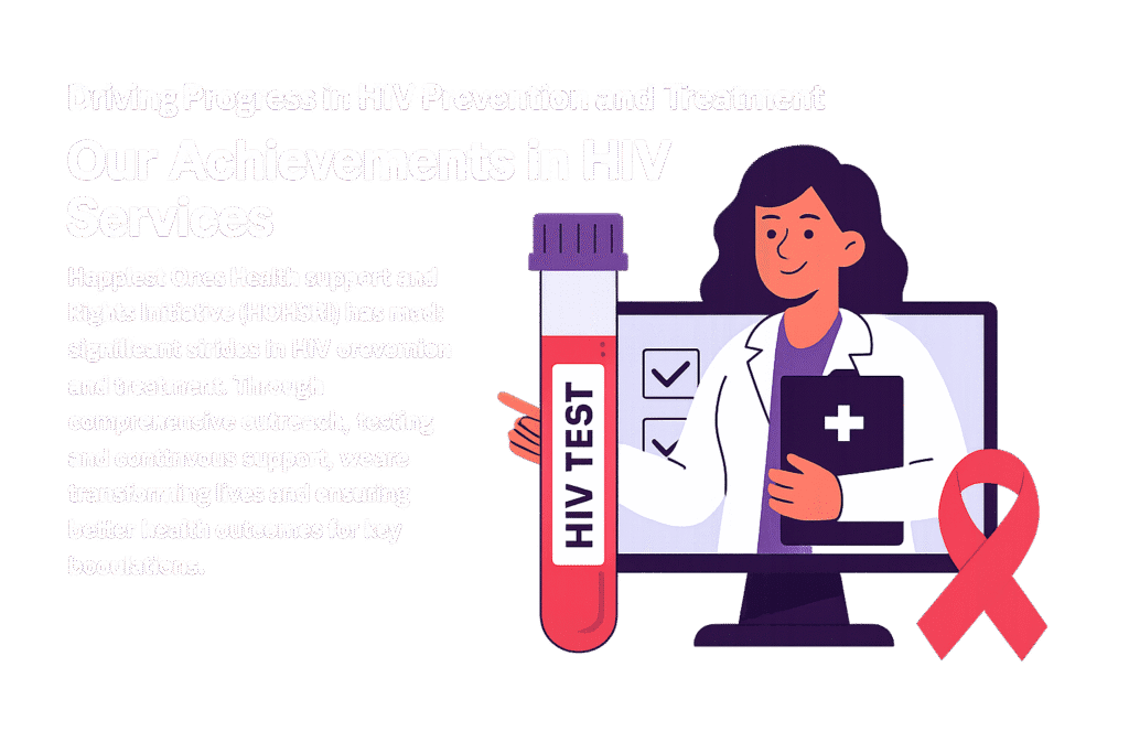 Our SRHR and HIV Testing Services (HTS) program offers free, confidential testing with immediate linkage to care and long-term support. We provide pre- and post-test counseling, follow-ups, and health monitoring to help individuals live confidently and well.